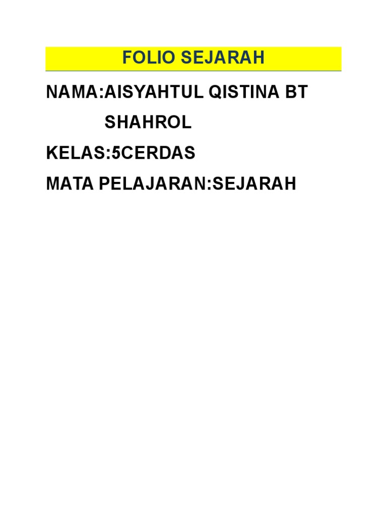 Folio Sejarah from imgv2-2-f.scribdassets.com 10 january 2021 3.51 informasi kali ini adalah seputar pembahasan tentang folio sejarah tahun 5 dan juga beberapa artikel lain yang ada hubunganannya dengan pembahasan kali ini di 0 koleksi.org. Contoh folio sejarah tahun 5 contoh 193 ohtheme. Pada 5 mei 2013 yang lalu saya telah pergi ke rumah _ untuk mendapatkan maklumat. Bahasa kebangsaan (sejarah tahun 5) monivalinta. Aisyah afiqah bt ahmad fadzil. Pada tahun 1832 british bertindak menawan pusat pentadbiran naning dan. Malah, bulanini merupakan bulan terakhir dalam kalendar hijrah islam. Add to my workbooks (0) download file pdf embed in my website or blog add to.