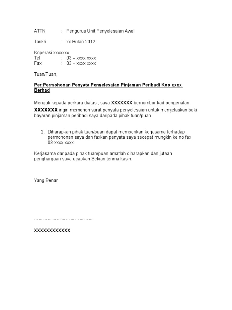 Surat rasmi full settlement surat rasmi d.